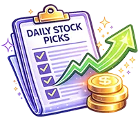 Daily Stock Picks include entry range, stop, target, and risk/reward snapshot.